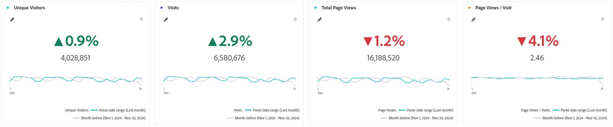 Visits – The number of sessions across all visitors to the website. Learn more about what is considered a ‘Visit’.