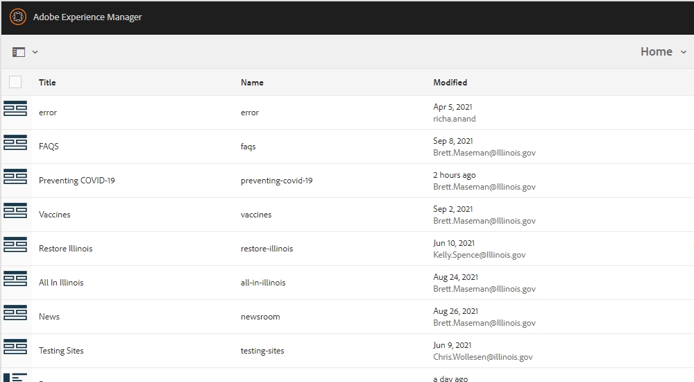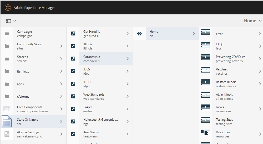 You will find a chicklet on your Okta Dashboard for Adobe Experience Manager (AEM). Log in using your Illinois.gov ID. You may also need to connect via a secure server and/or agency VPN. Contact your AEM administrator with any issues.