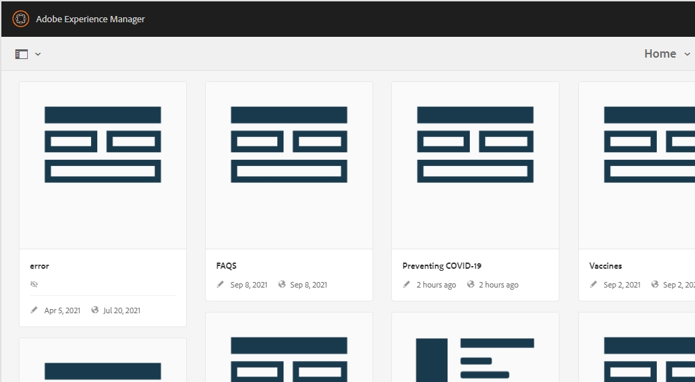 The card view is especially useful when using AEM on touch-friendly devices such as iPads and mobile devices. However, it can be challenging to view the page hierarchy in this mode.